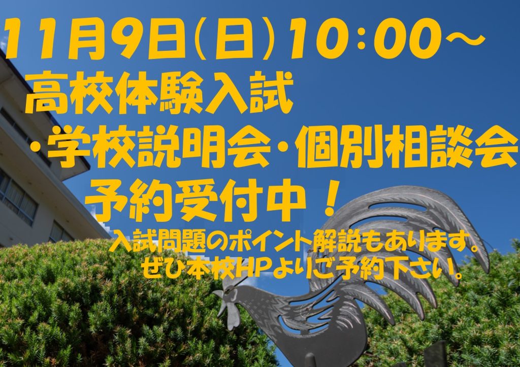 11月9日 高等学校 体験入試・学校説明会・個別相談会【予約受付中】