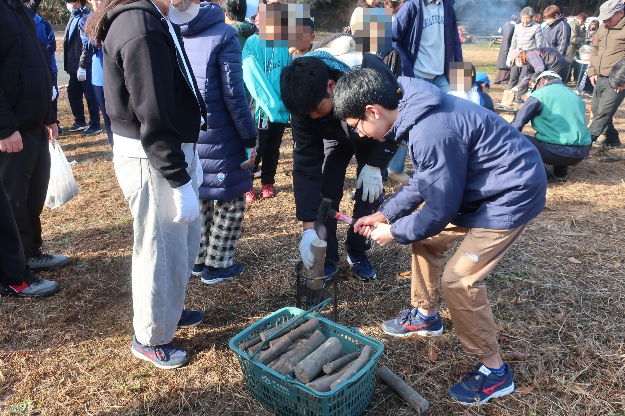 本日、稲作体験ボランティアで、収穫したお米の試食会がありました。上川口小学校の生徒や地域の方々と一緒に、6月から田植え、草取り、稲刈り、脱穀をしてきました。これらを通して中学1・2年生に稲作がどのようなものなのか知ってもらった上で、本日は、薪を割ったり、のこぎりで短くしたりして、かまどにくべ、お米としし鍋をいただきました。普段の生活で薪割りをする機会はあまりないと思うので、良い経験になったと思います。おかずを持参してもらいましたが、釜で炊かれたコメはそのままで食べても美味しいと、多くの生徒が言っていました。下に生徒の感想の一部を載せますが、この稲作体験ボランティアで多くの経験を本校の生徒はさせていただきました。上川口小学校の皆様、地域の皆様にこの場を借りて感謝申し上げます。