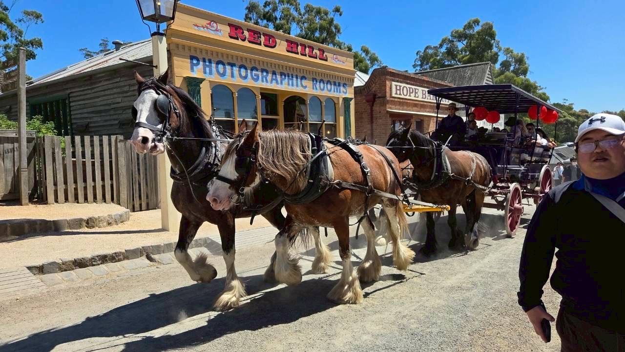午後は、1850年代のビクトリア州ゴールドラッシュ時代の街並みを再現した屋外型博物館「ソブリン・ヒル」へ移動しました。昼食後は班ごとに園内を巡り、ゴールドラッシュがもたらした州の発展の歩みに触れました。歴史を単なる知識として学ぶのではなく、当時の人々の暮らしに思いを馳せる時間となりました。夕方にはホテルへ無事帰着しました。