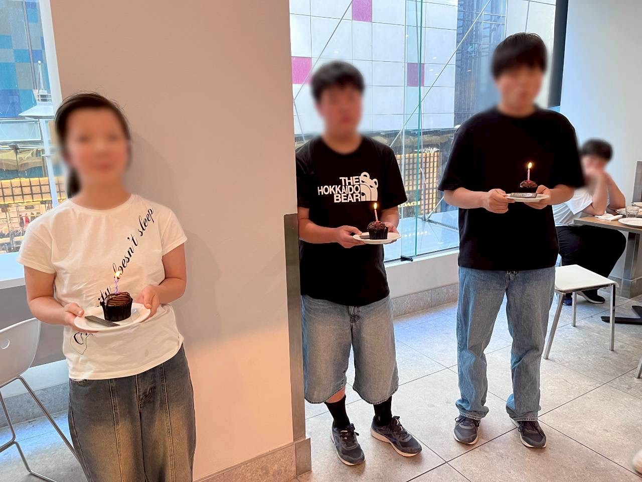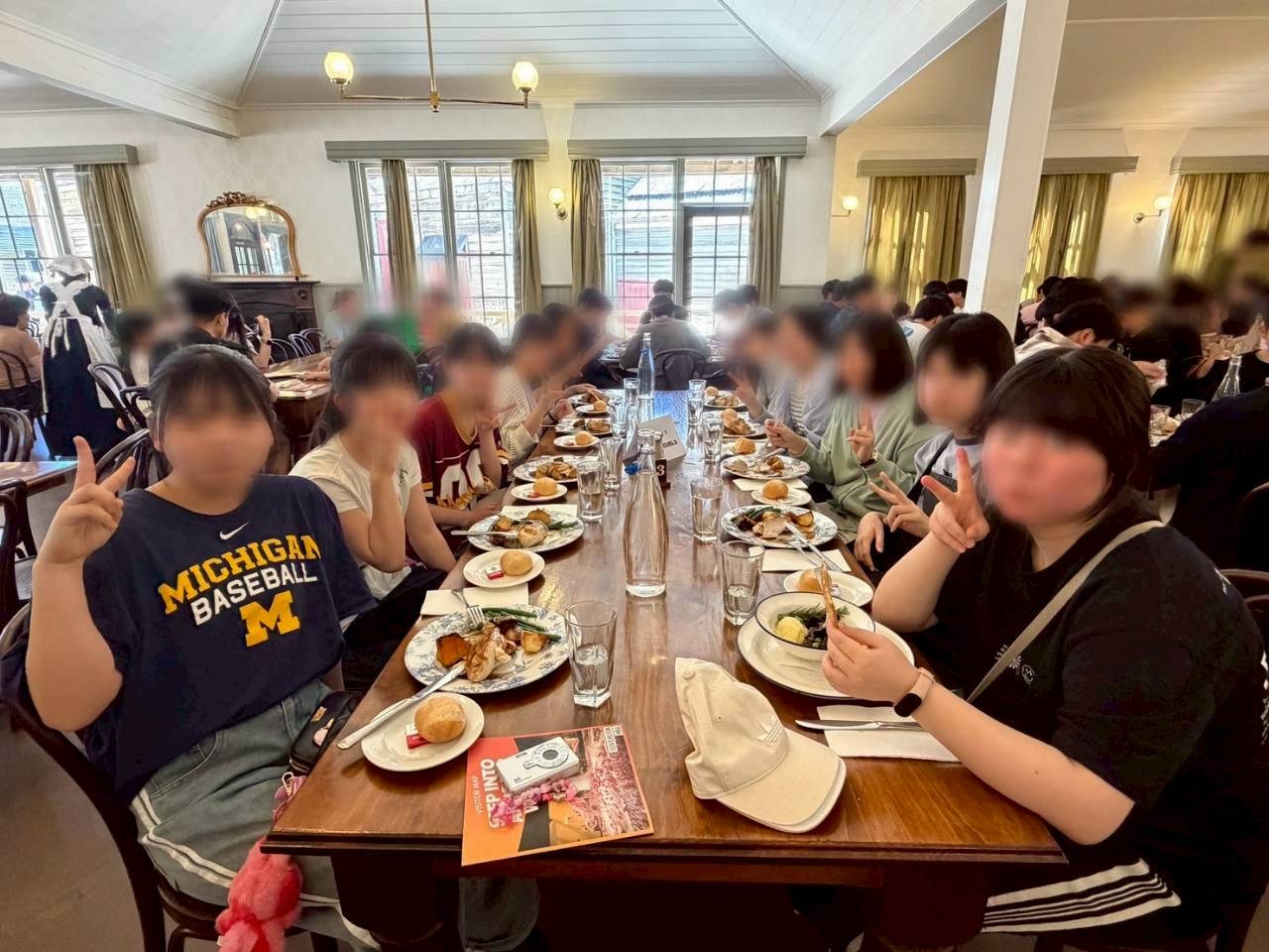 また夕食時には、修学旅行中に誕生日を迎えた3名の生徒へ、旅行会社の方からサプライズプレゼントが贈られました。思いがけないお祝いに、生徒たちは驚きながらも大変喜んでいました。