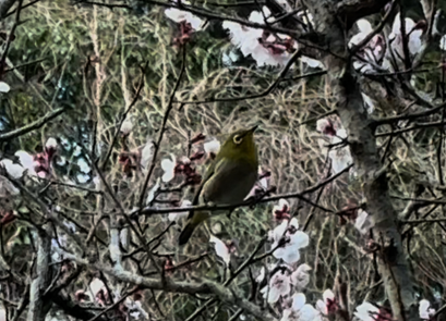 写真は梅の花に来訪したメジロです。 毎年、この時期は樹の葉が少ないので、非常に観察しやすいです。ただ警戒心が強く、カメラを近づけてもすぐ別の梅の木に逃げてしまいます。