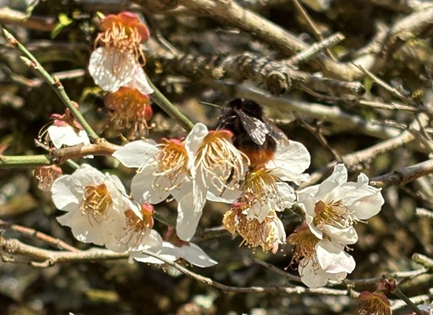 次の写真は梅の花に来訪したマルハナバチの1種。