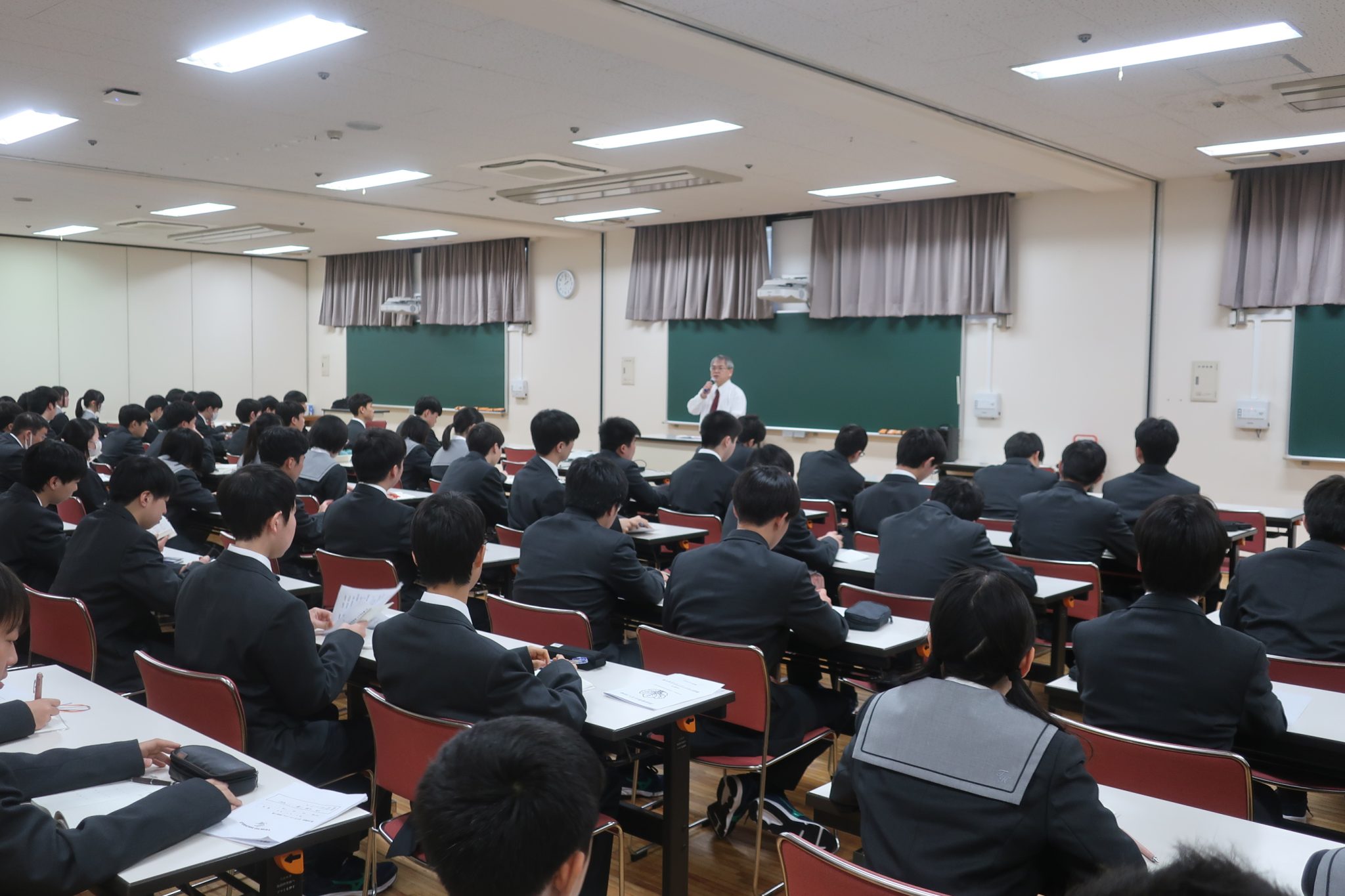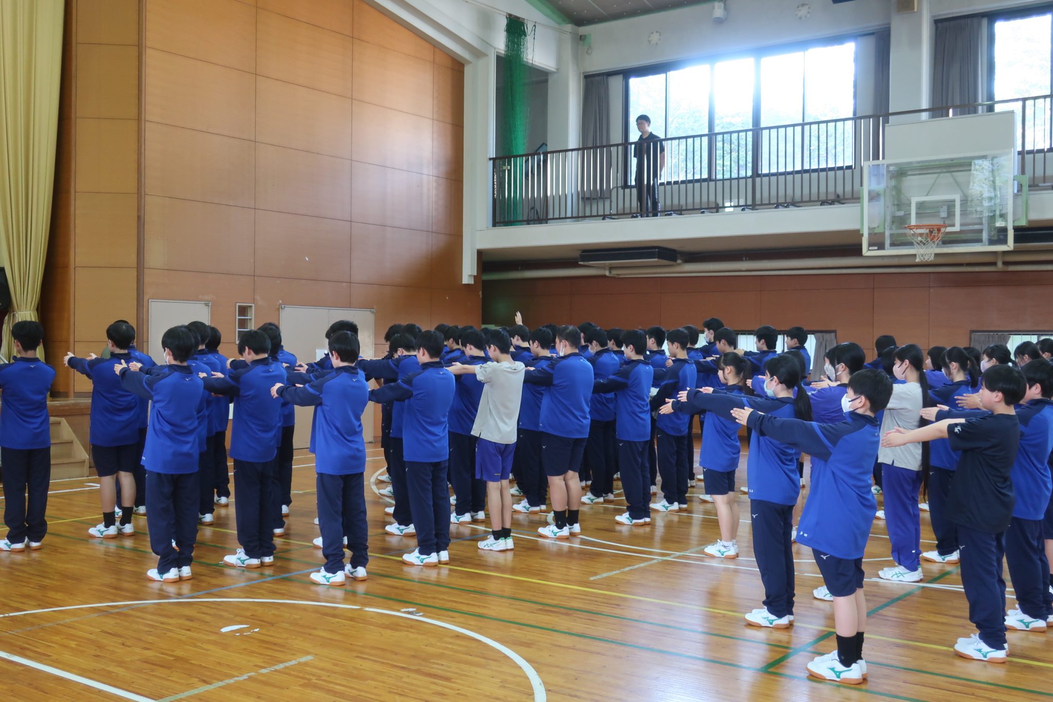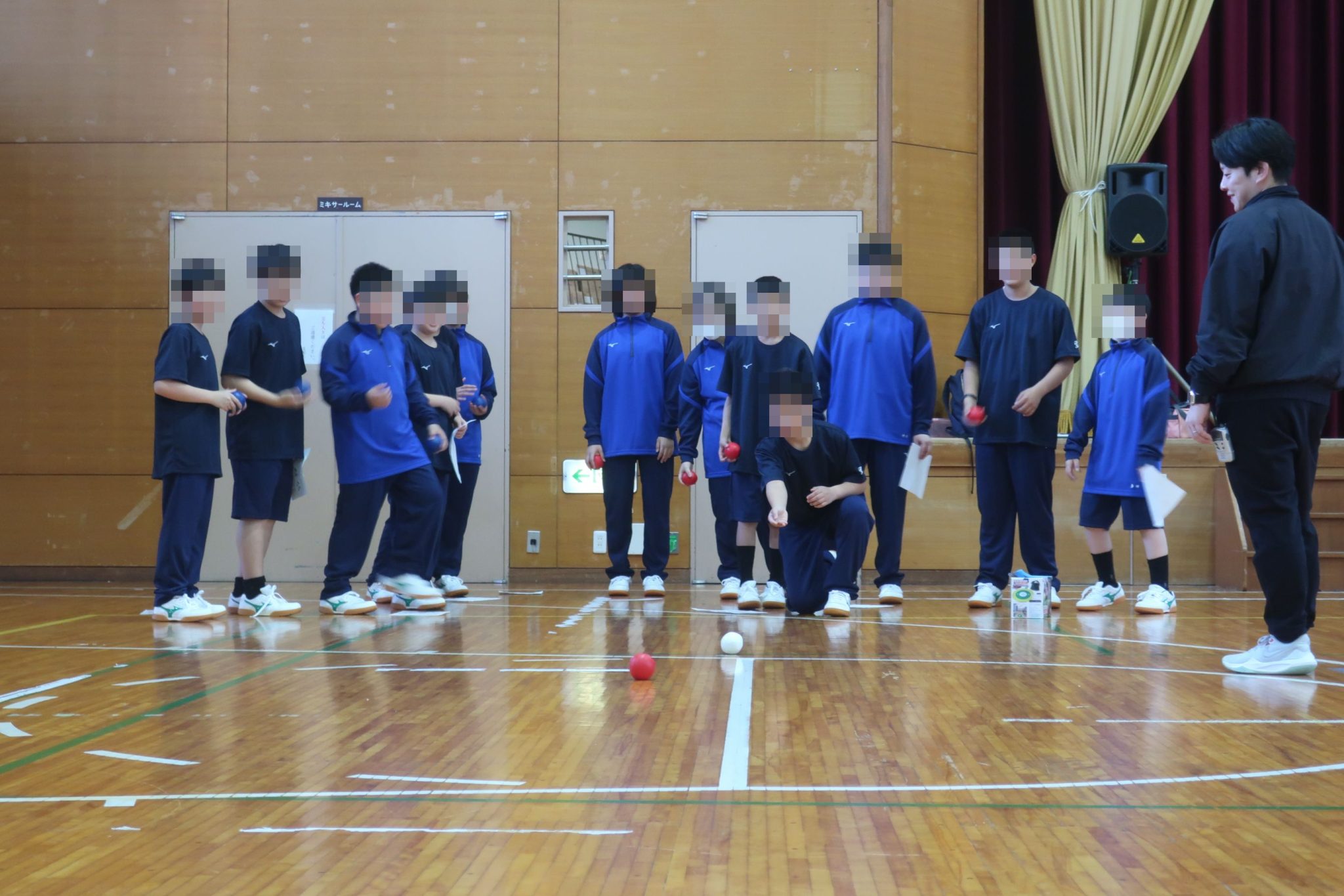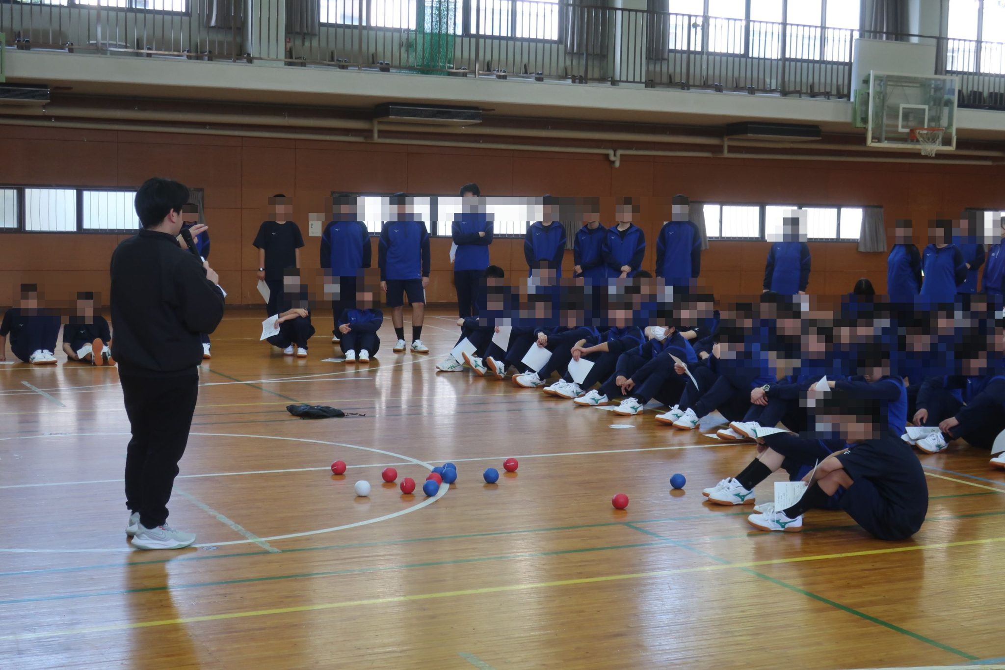 12日から新入生オリエンテーション合宿が行われています。初日は、校長先生から学校概要について、生徒指導の先生から生活面についての話がありました。その後、体育館に移動して集団行動の練習をし、パラスポーツのボッチャをやりました。学校生活について学ぶとともに、生徒はチームを組んでボッチャを楽しみ、お互いの距離を縮められたと思います。夕食後のHRでは自己紹介などする予定です。